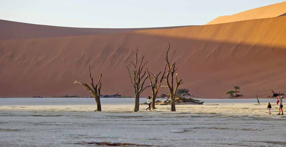 The Namib Desert is a prime example of this cosmic terrain. Imagine red dunes as far as the eye can see and the eerie beauty of Dead Vlei, where the skeletons of ancient trees reach up through the cracked earth like something out of a sci-fi scene.